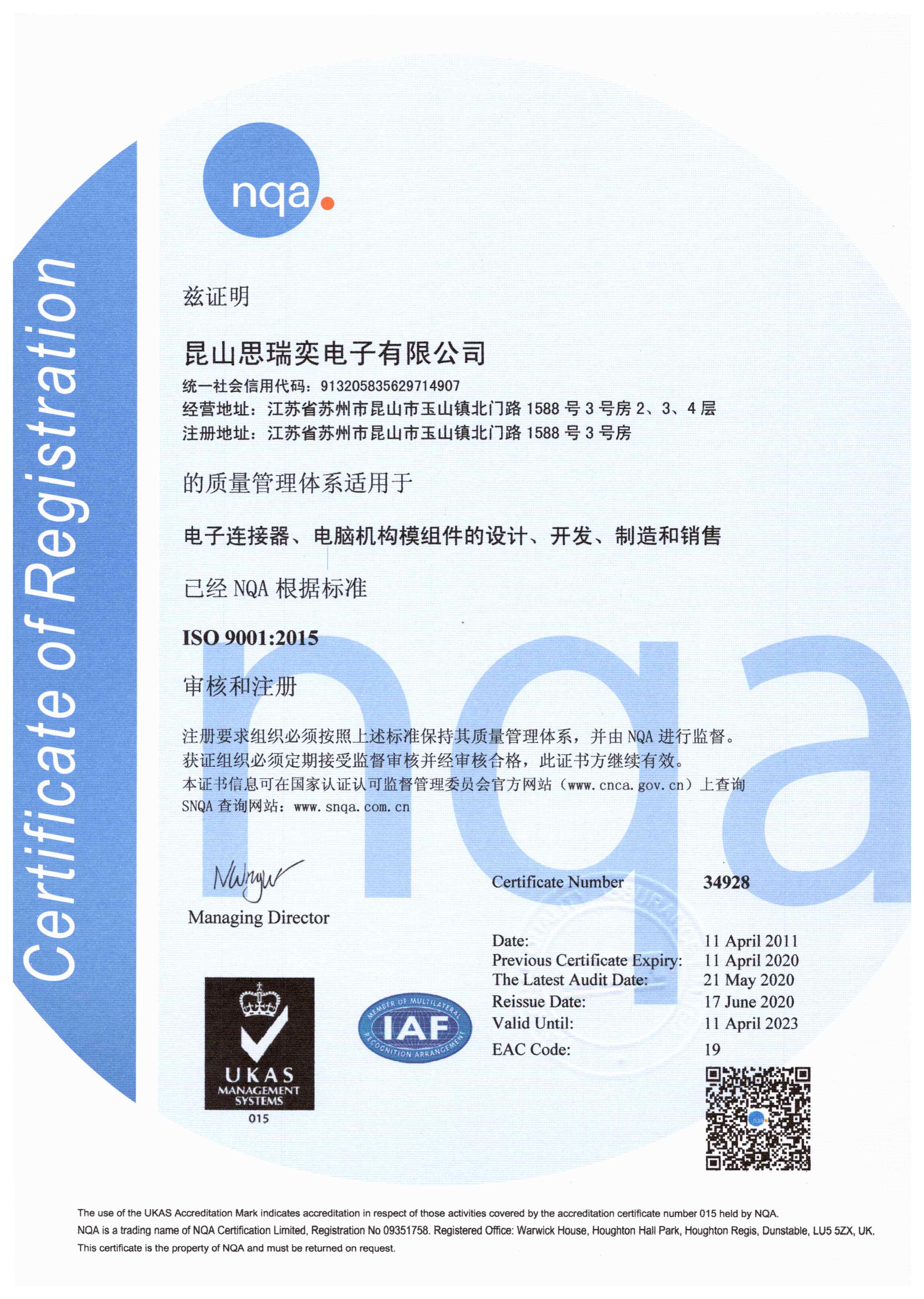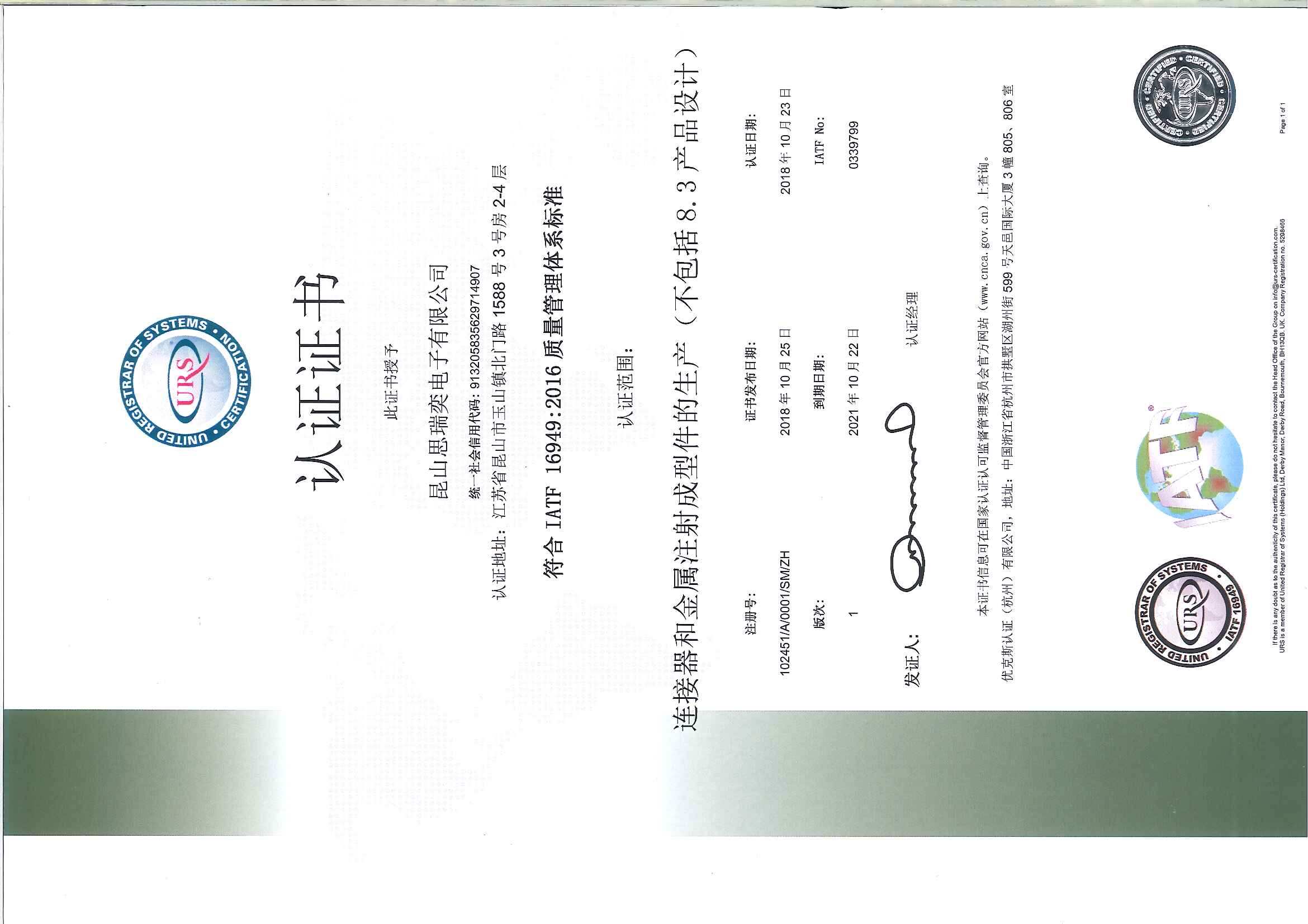 思瑞奕電子有限公司成立于2010年10月,注冊資金7500萬人民幣,總部位于江蘇省昆山市,在重慶、江蘇東臺、江蘇太倉設(shè)有分廠,公司于2011年通過ISO9001/ISO14001認(rèn)證,2013年通過高新技術(shù)企業(yè)和TS16949(IATF)體系認(rèn)定,2016年先后通過知識產(chǎn)權(quán)管理體系認(rèn)證、安全生產(chǎn)標(biāo)準(zhǔn)化認(rèn)證,2017年獲頒江蘇省民營科技企業(yè)、2018年先后獲得蘇州市人民政府認(rèn)定企業(yè)技術(shù)中心、科技部認(rèn)定中小型科技企業(yè)、江蘇省最具成長性高科技企業(yè)、2020年獲得江蘇省人民政府認(rèn)定企業(yè)技術(shù)中心、2021年獲得蘇州市瞪羚計(jì)劃入庫企業(yè)、江蘇省省級工程技術(shù)研究中心、江蘇省專精特新中小企業(yè)等榮譽(yù)稱號......